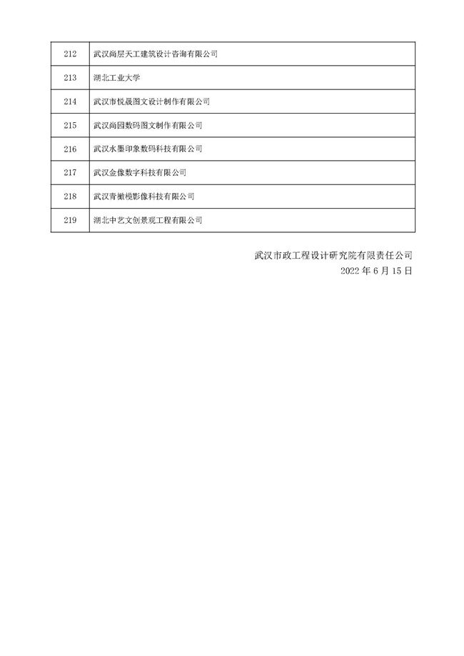 關(guān)于武漢市政工程設(shè)計(jì)研究院有限責(zé)任公司工程勞務(wù)分包(設(shè)計(jì)類)預(yù)選承包方庫(kù)項(xiàng)目的遴選結(jié)果公示