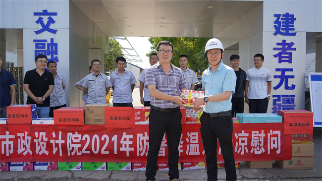 公司領(lǐng)導(dǎo)先后來到長江新城諶家磯再生水廠工程、湯遜湖污水處理廠尾水排江工程總承包項(xiàng)目、環(huán)湖中路排水工程測量、龍王嘴污水處理廠、青山海綿城市等項(xiàng)目現(xiàn)場,詳細(xì)了解項(xiàng)目進(jìn)展情況、高溫防暑措施和疫情防控情況,并為堅(jiān)守崗位的員工們送上高溫慰問品,感謝他們在城市建設(shè)中做出的積極貢獻(xiàn),叮囑他們做好防暑降溫和個(gè)人防護(hù),注意勞逸結(jié)合,在保證項(xiàng)目按期推進(jìn)的同時(shí)務(wù)必保證個(gè)人的安全與健康。